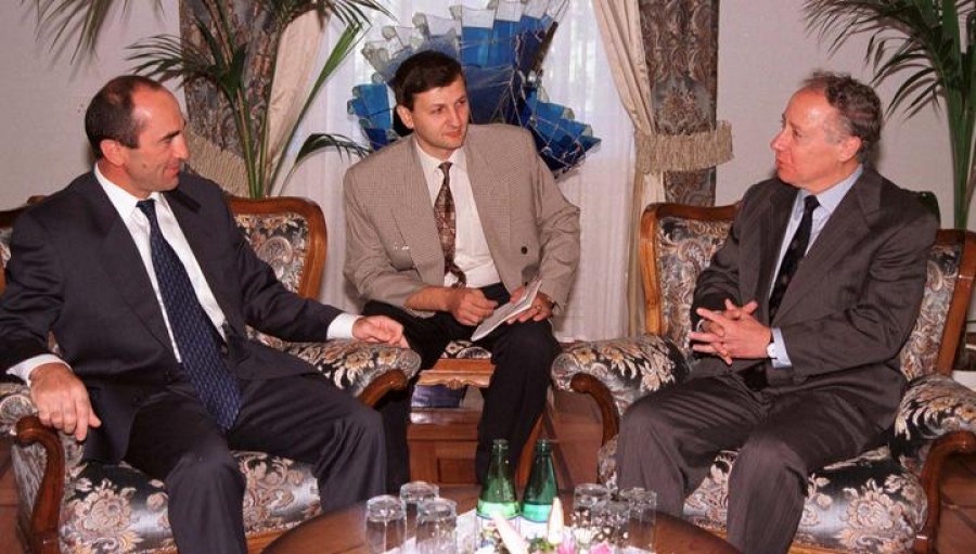 Այս լուսանկարում Հայաստանում ԱՄՆ 2-րդ դեսպան Պիտեր Թոմսենն է նախագահ Ռոբերտ Քոչարյանի հետ։Դեսպան Թոմսենը ղեկավարել է ԱՄՆ դեսպանությունը 1995թ․ սեպտեմբերի 6-ից մինչև 1998թ․ սեպտեմբերի 6-ը: