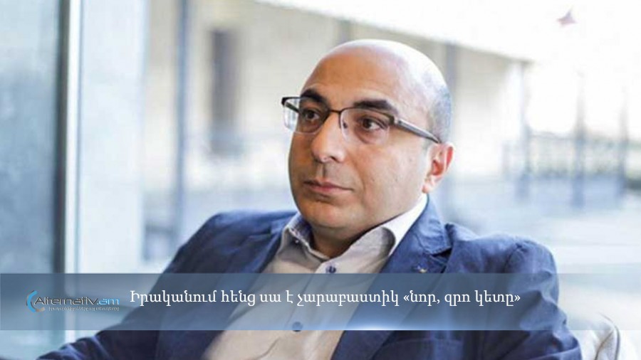 Ալիևի հայտարարությանն ի պատասխան Նիկոլի արձագանքը ոչնչի մասին էր և ոչ մի լուծում չառաջարկող։ Հայաստանին պետք են նոր ոչ ստանդարտ գաղափարներ։ Դրանք հաստատ Սևրի պայմանագրի կամ Ջրականից մինչև Շուշի անհապաղ վերադարձնելու, սահմանազատման դեմ օրենքի նախագծի պարզունակ պատկերացումները չեն։ Հայաստանում կան մարդիկ, որոնք լավ են տիրապետում խնդրին և լուծման հնարավորություններին։ Ուրեմն պետք է մեծանա նրանց պահանջարկը։ Հայաստանին պրագմատիզմի և հեռանկարի հաշվարկման վրա նոր քաղաքականություն է պետք՝ ներքին և արտաքին»։