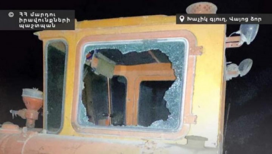 Երեկվա ադրբեջանական կրակոցները Արենի համայնքի Խաչիկ գյուղի ուղղությամբ եղել են թիրախային, փշրել են հողային աշխատանքներ իրականացնող քաղաքացիական բնակչի տրակտորի հետևի ու կողային ապակիները: Այս մասին իր ֆեյսբուքյան էջում գրել է ՀՀ ՄԻՊ Արման Թաթոյանը։