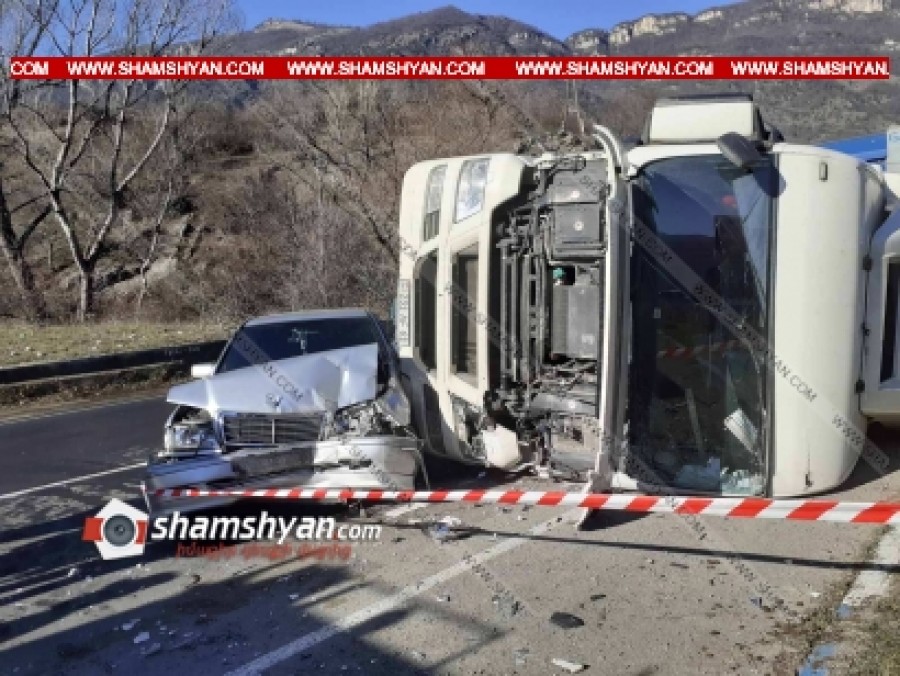 Տավուշի մարզում բախվել են Mercedes-ն ու Man բեռնատարը, վերջինը կողաշրջվել է․ կա վիրավոր